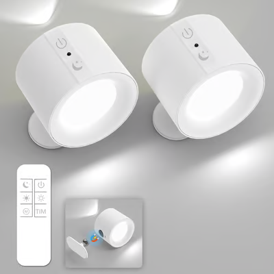 2 Pack 360° Rotatable Rechargeable Touch Wall Lamp with Double Sided Light Source