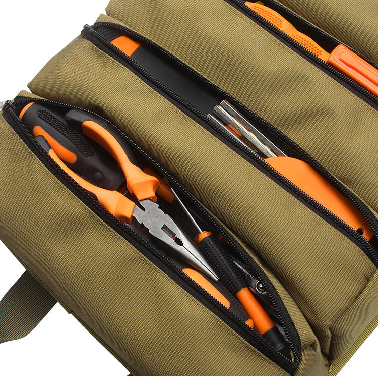 Durable Material: This tool storage box is crafted from high-quality, water-resistant Oxford fabric. It features rust-proof zippers, sturdy straps, and buckles, along with well-stitched edges, ensuring long-lasting durability.